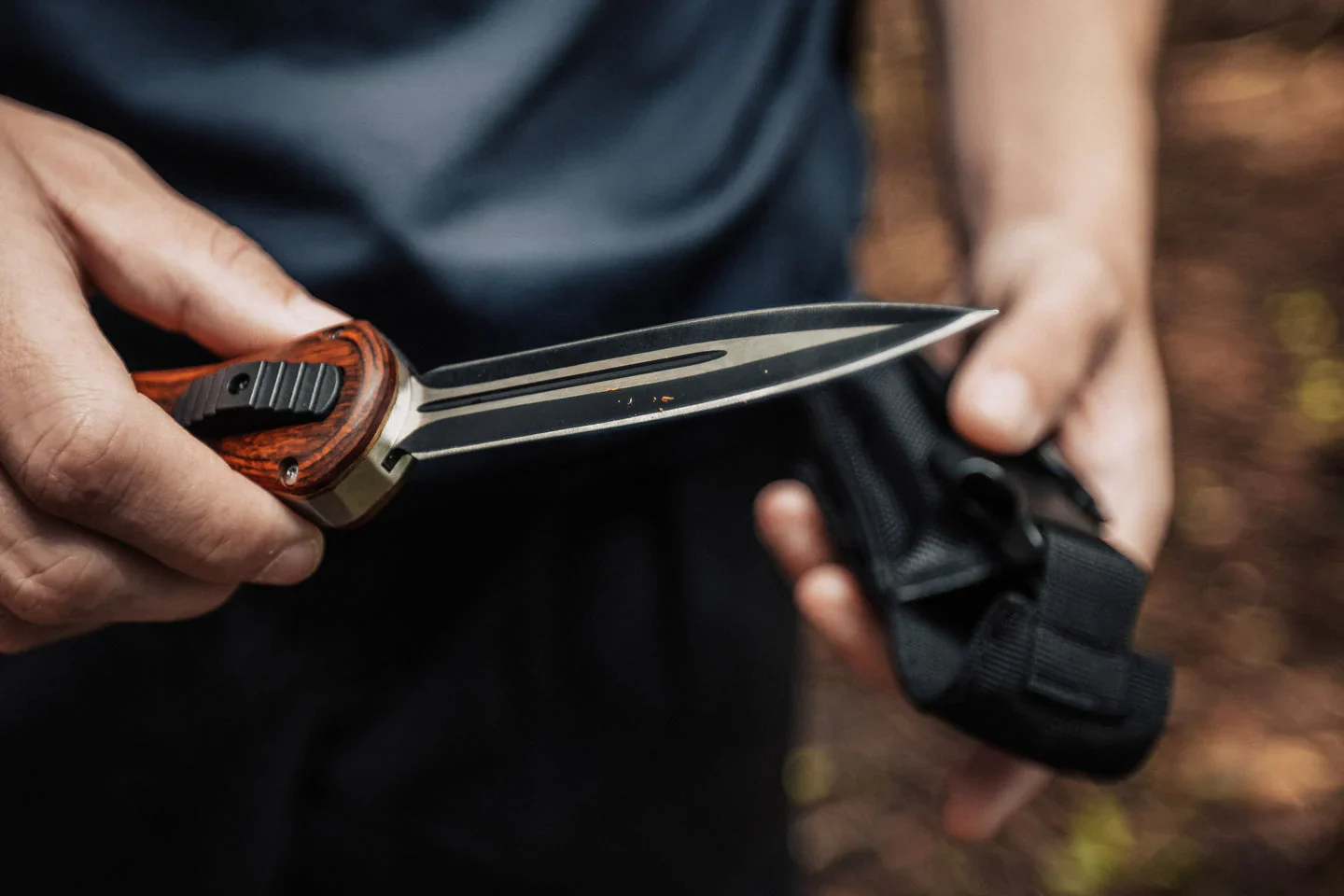 This high-end OTF knife is rugged yet gorgeous, comfortable in the hand, and has a buttery smooth push button deployment mechanism that’s incredibly satisfying to use and gives you near-instant access to its devastatingly sharp dagger blade.